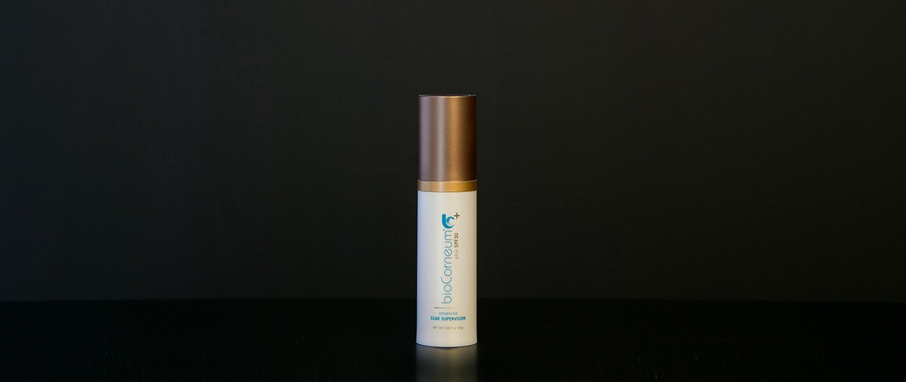 Biocorneum+ is a physician-dispensed serum that is the only FDA-cleared silicone gel scar treatment with SPF30.